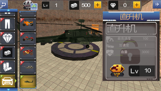 3、进入商城后可以看见有各种武器装备,只要你的游戏金钱足够多,你还能买到直升飞机,是提升你实力的好去处;