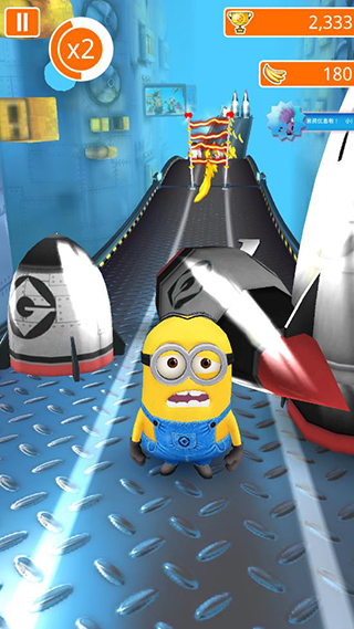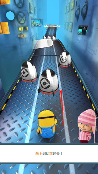 1、躲避:小黄人快跑维克多会投掷出大量高大的无人战机!这些无人战机小黄人是无法用跳跃躲避,只能通过左移和右移改变通道来进行躲避。