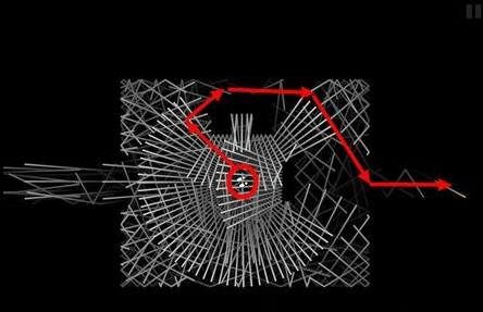 移动的红色线为洞穴怪物。