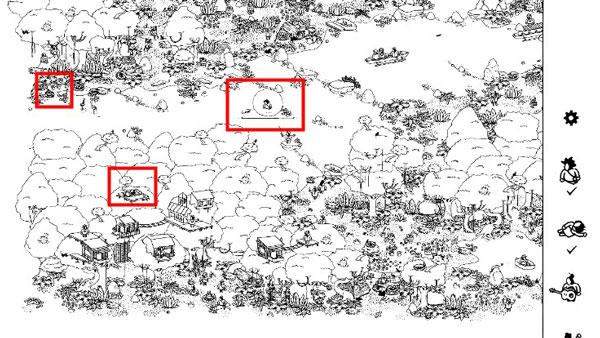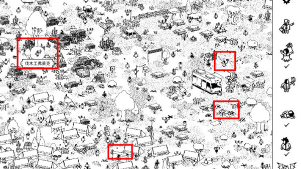 隐藏的家伙英文名也叫做Hidden Folks,是一款黑白风格的寻物冒险游戏,与其它的找茬游戏不同,这款游戏采用的是黑白素描手绘风,简单的黑白两色非常考验你的视力,让寻物变得更加困难,游戏中一共有20多张不同风景的手绘地图,包括森林、雪地、旱地等,并且每一张地图里的某些建筑并不是静态的,例如你可以卷起帐篷、砍掉树林、开关大门、甚至还可以戳戳鳄鱼,每一个操作都能带给你不一样的惊喜。Hidden Folks中的物品隐藏得都很深,完全与场景融为一体,寻找难度很大,十分具有挑战性,想要通过所有关卡,不止需要实力、还需要时间,喜欢寻物游戏的小伙伴一定不要错过。
