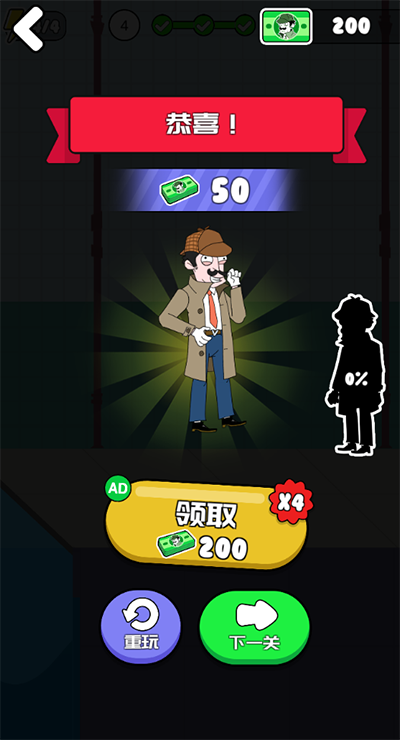 3、名侦探老王游戏丰富的关卡等你通过,合理的推理会很快速的找到答案的;