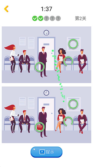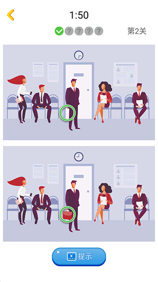 如果不明显,可以点击屏幕上的提示按钮,然后根据提示寻找不同的;