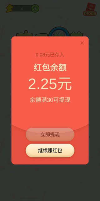 4、游戏中可以随机获得红包,最后达到提现要求就可以进行提现了。
