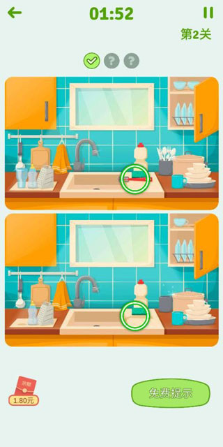 有大量的挑战关卡,关卡的难度会随着玩家的深入而逐渐变得困难,玩家需要更仔细地寻找。游戏采用卡通风格,让人感觉轻松有趣,不会太伤眼睛,轻松找到区别。