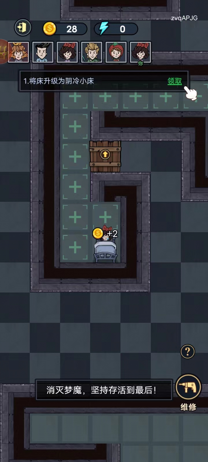 优先提升床的等级,在购买两个炮台,升床铺能够快速的获得金币。在提升门等级,增加血量。之后在购买游戏机。