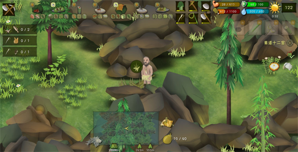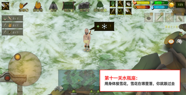游戏中有不少投掷类工具,石头,竹叉,弓箭。有时候你会碰到一些猎物,如草原上的兔子,池塘里的鱼。你需要用你的投掷工具瞄准猎物进行猎杀,当然不同的猎物需要不同的投掷工具。