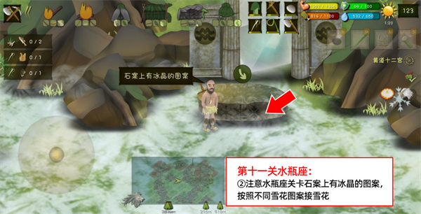 ②注意水瓶座关卡石案上有冰晶的图案,按照不同雪花图案接雪花
