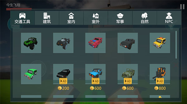6、背包里有各种建筑、汽车、人物模型,随意选择一辆汽车。