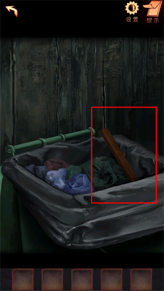 1、点击垃圾桶,找到里面的木棒,可作为后面的工具