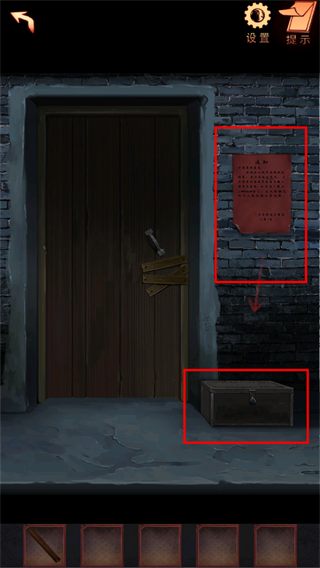 21、点击右侧的门,对着锁使用道具砖头,将锁砸开