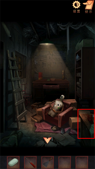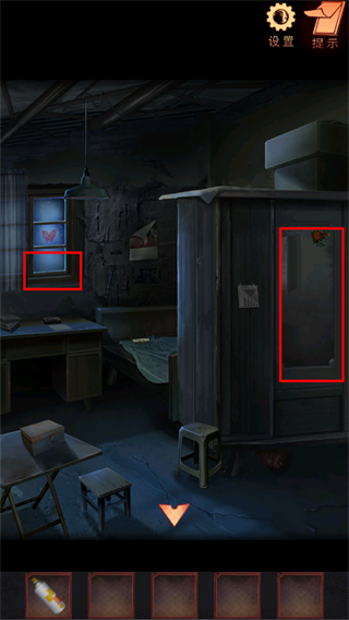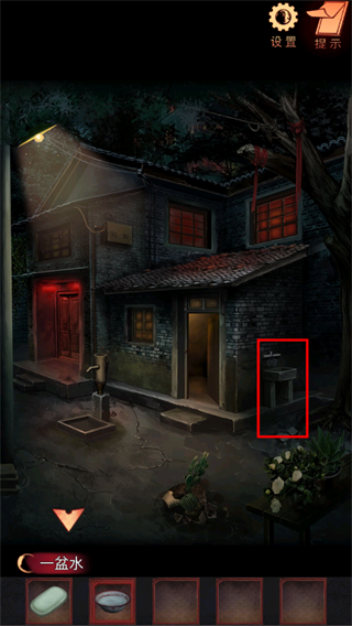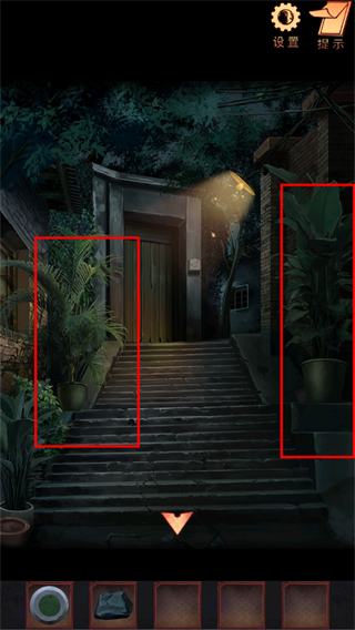 16、点击上方发光的孔洞,查看院内的纸箱,获得牛奶箱上滑块位置的线索