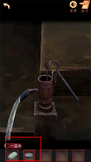 30、点击完整的压井,出水口出水,对着水流使用道具:脸盆。获得一盆水
