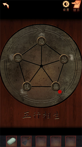 37、根据之前获得的五脏与颜色,位置的对应关系,调整圆块的位置到正确位置。获得道具: 金属滑块