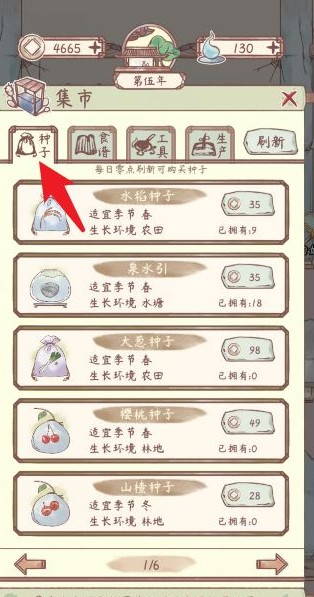2、尽可能不从无忧夫人处购买种子,避免因为太黑一直刷不出这种问题,所以图上只有墨鱼和菠萝是需要从无忧夫人处购买。