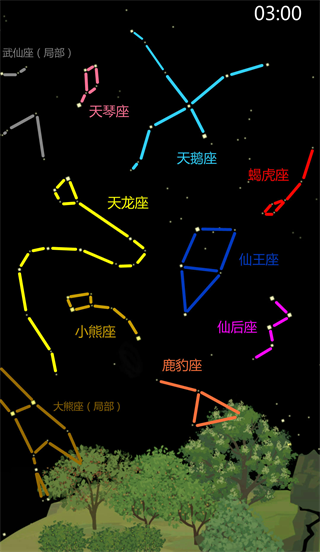 可收集(7个):狐狸座,天琴座,天龙座,小熊座,仙王座,仙后座,鹿豹座。