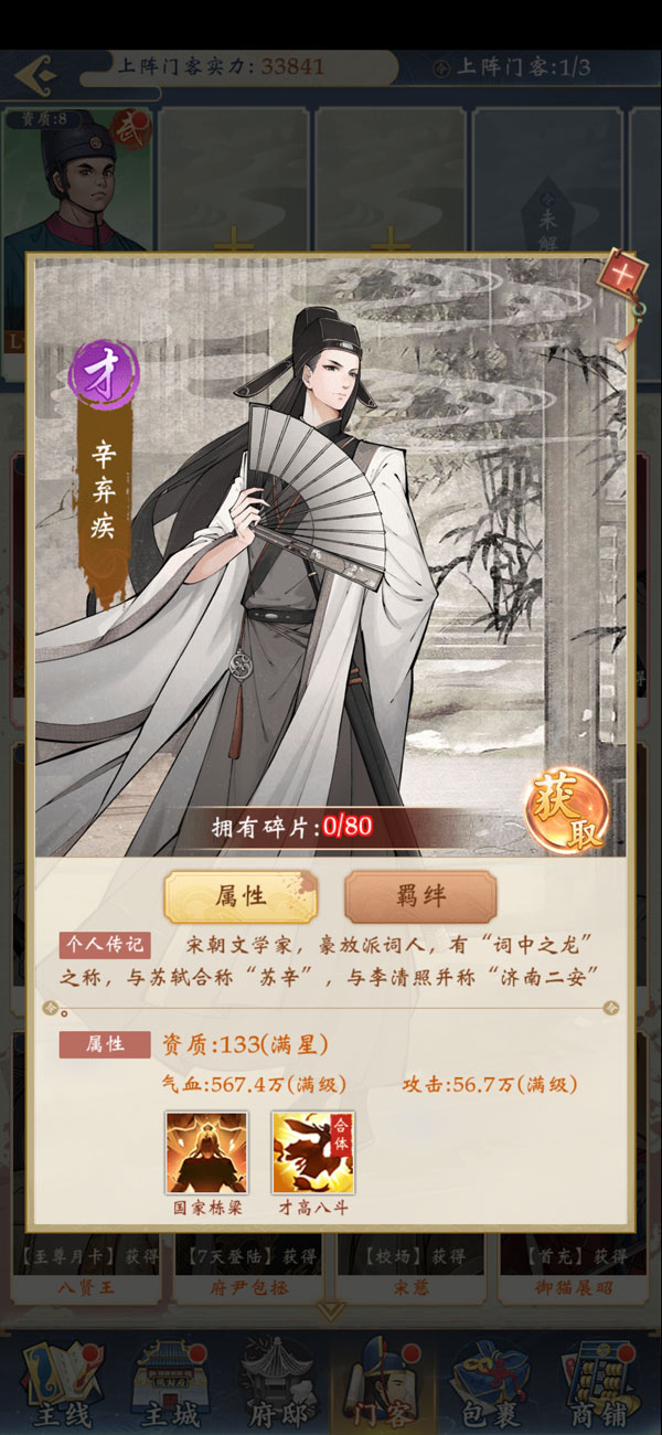 门客升星:可以通过消耗门客碎片来提升星级,从而提升门客资质。