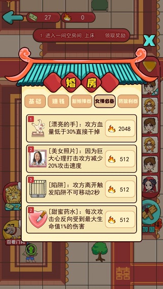 2、【房间】拥有各种不同种类的游戏房间,让你能够自由挑选,你要做的就是在房间中赚钱升级抵御敌人。