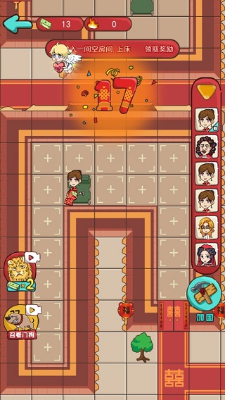 新婚派对是抖音上近期一款十分火爆的躺平发育游戏,由前段时间火热的游戏《猛鬼宿舍》延伸而来,一改之前的风格,将地图从恐怖的宿舍换成了喜庆的婚礼,精美的游戏画面设计的同时,保留了游戏的核心玩法,你可以在新婚派对中体验不一样的躺平发育。惊险派对,惊心来临,游戏中我们要扮演一名准备结婚的新娘子,然后联合其他的新娘一起共同抵抗新郎。在抵抗的过程当中我们的小侄子会帮助我们,并且升级小侄子还会直接将其变为其他的亲戚,能够更好的帮助我们抵抗新郎的进入!游戏的玩法其实和躺平发育差不多,不同的就是风格。