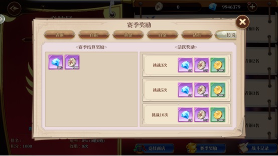 随着段位的提升,赛季奖励也非常丰厚,除了大量的钻石外,最重要的就是珍贵的竞技场币。
