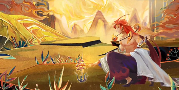 6、采用独特神秘的东方岩彩画风格,融合皮影、壁画、剪纸等传统艺术元素!