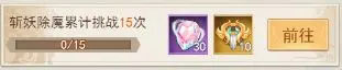 第五天开启的斩妖除魔目标——其实15次斩妖除魔说多不多,说少是真的少,因为除了2次强攻机会,每天还有8次额外挑战机会,每过一段时间稍微卡个点就可以轻松拿下任务~