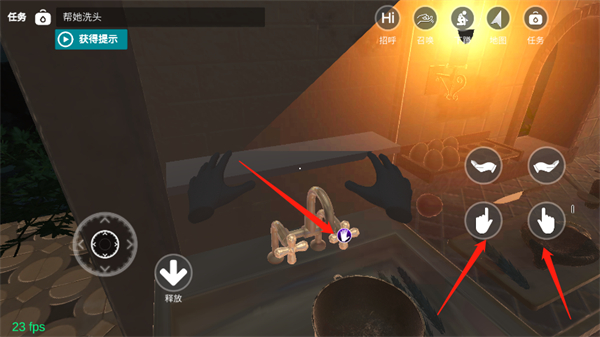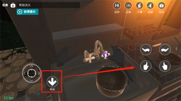 2、进入游戏后,左右手心向上手掌分别是“给”和“索要”,可以递给小忍物品或者索要物品。
