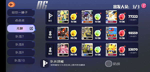 卡面精美,三人三宠三武器,任意搭配作战,战斗更加激爽。