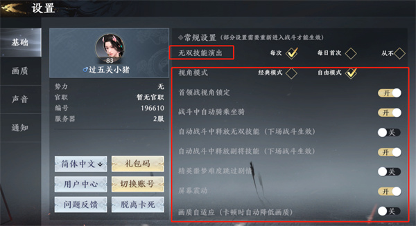 No.5 如何关闭无双动画、调高画质等