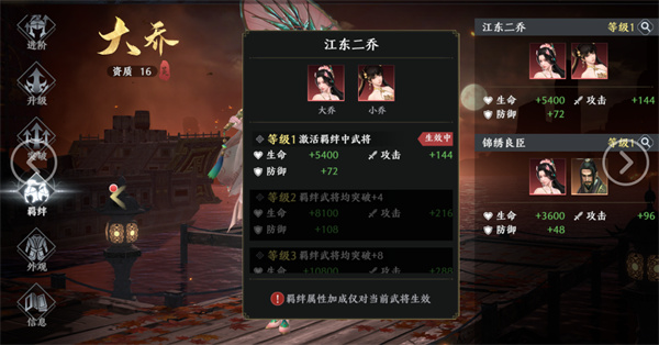 武将和坐骑都是有【羁绊】设定的,搭配合理的话,可以大大提升战斗力。