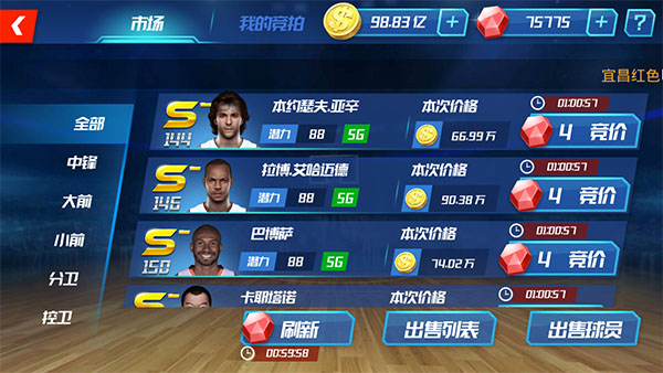 球员交易:玩家可以在球员交易界面中通过和其他玩家竞价的方式获得你心仪的球员。