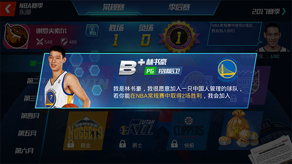 NBA联赛:在NBA联赛中,达到某些球员的指定要求,球员就会参加你的队伍哦~