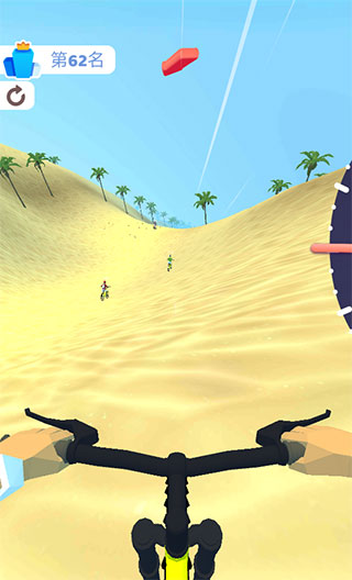 《疯狂自行车》是一款超刺激的第一人称视角自行车竞速游戏,画面用3D引擎打造,感觉特别真实。游戏中你要和其他玩家比赛,避开各种障碍物,比如突然出现的山崩、大石头等等,得靠快速反应躲避过去。如果想赢,加速撞飞对手也是个好办法!游戏里有超多自行车和角色可以解锁,场景也很多样化,从雪山到沙漠都有,地图设计得很棒,玩起来很有挑战性。