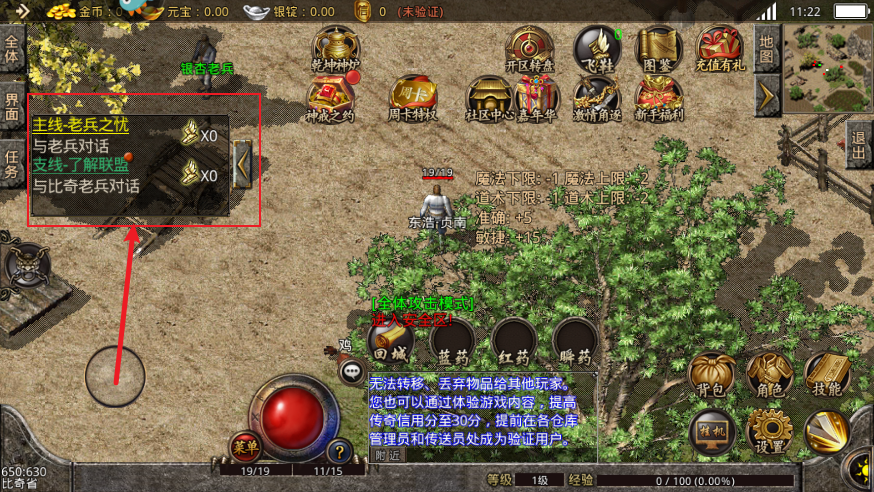 2、作为传奇打金游戏,等级固然很重要,玩家可以通过接取左侧的任务快速刷取经验值。