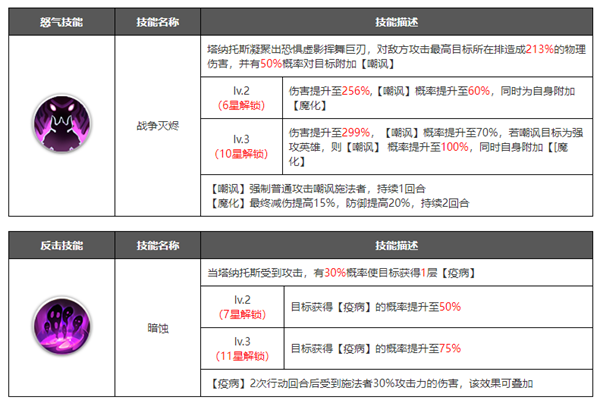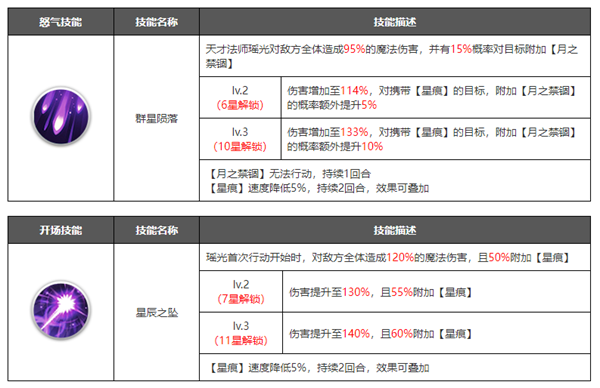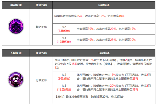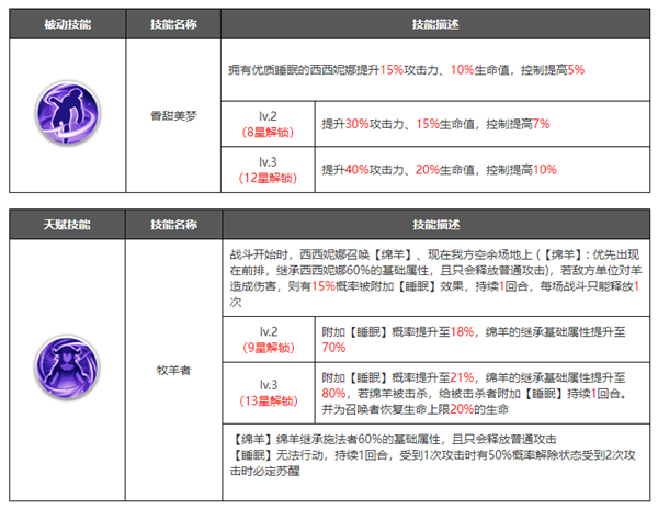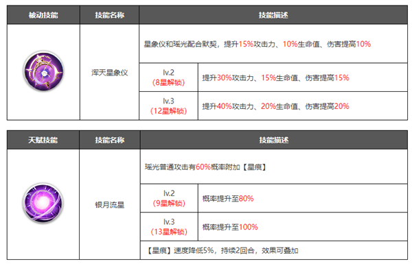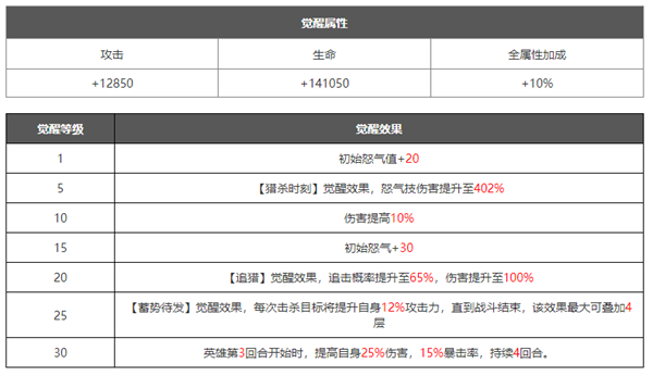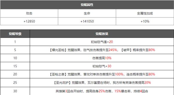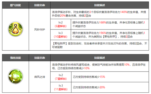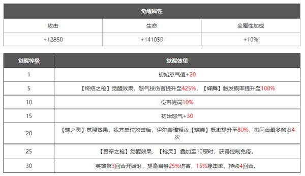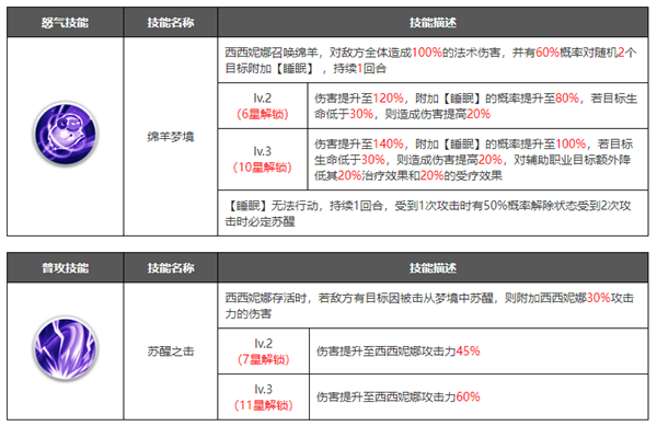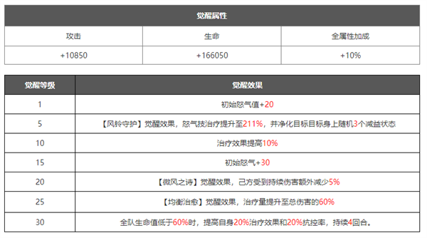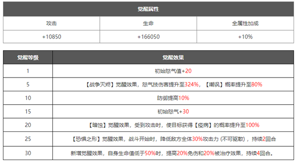 在角色培养到十星之后可以解锁觉醒界面,可以理解为花费资源升级觉醒等级,然后解锁更加强力的技能.觉醒技能一般是在原有技能的基础上进行数值的增加,或者新增各种增益/减益效果,大部分都是被动技能,解锁之后能大幅提升角色的战斗力。