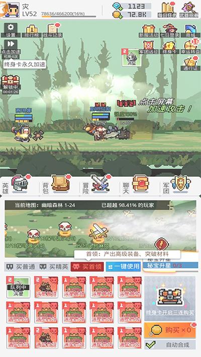 3、英雄远征建议打了放一个英雄然后打完了打得过的就返回重新找一个图再放英雄拿奖励每个图奖励很多不会说没金币
