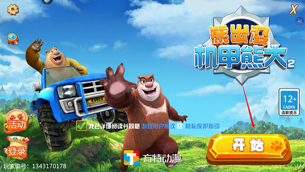 1、下载打开熊出没机甲熊大2游戏,勾选同意协议点击开始;