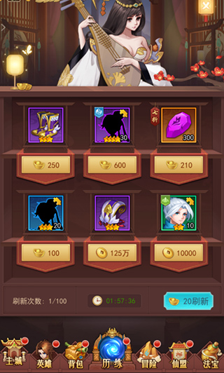 藏宝阁系统内可以用元宝刷新一些星级比较随机英雄碎片和英雄碎片哦~