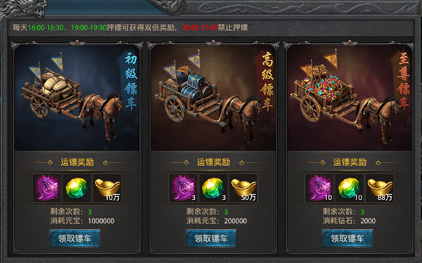 2、每天16:00-16:30、19:00-19:30押镖可获得双倍奖励