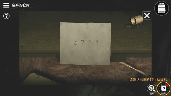 4、书桌旁边会有个纸,点击纸得到抽屉的密码4721。