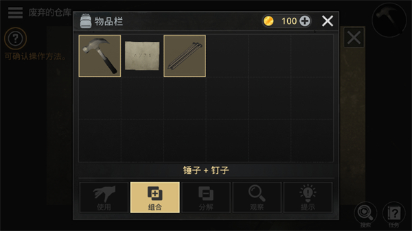 7、再把锤子和钉子组合就可以用来钉住窗户。