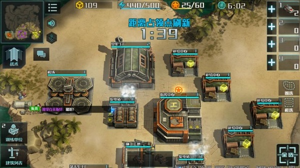 游戏中最为经典的模式莫过于3V3,在该模式中可以享受更多人作战,打击感和画面作战感相对也有所提升。以一局3V3为例,开局在建造基础设施(发电厂、补给中心、兵营、突击车工厂)后与队友协商后期所玩兵种。这个开局协商是很有必要的,对中后期作战布局和进攻起决定性作用。