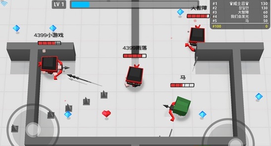 此外,战斗中会出现钻石和红心,钻石可以提升等级和经验,红心则用来补充血量。消灭敌人可以获得积分和奖励,提升等级后还可以选择适合自己的属性进行强化。