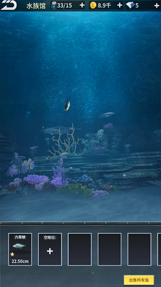 5、你可以选择直接出售,转化金币入账,也可以采取“放长线钓大鱼”的思路,先“放入”水族馆养一段时间再卖,鱼在放入水族箱后会不断成长,卖出时获得的金币也会更高哦~