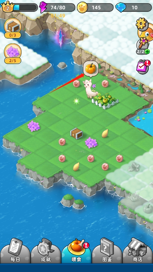 5、点击下图的南瓜,可以对动物进行喂食;
