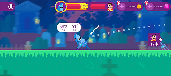 2、向后拖动弓箭,移动的距离越多,力度越大,调整合适的角度控制你的角色释放武器。