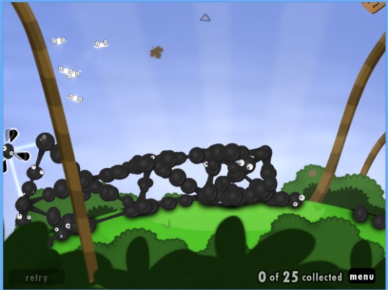 2、游戏部分分5个章节,玩家要使用一种叫粘豆包的粘性小球来搭建庞大复杂的结构。