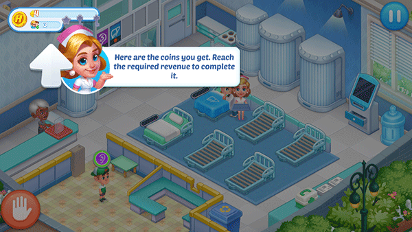 怎么玩呢?通过赚取星星解锁设备,帮助其他医院也能获得星星。治疗病人需要把他们拖拽到病床上,医生会问诊,再点击工具就能使用。当病人离开时要整理病床。