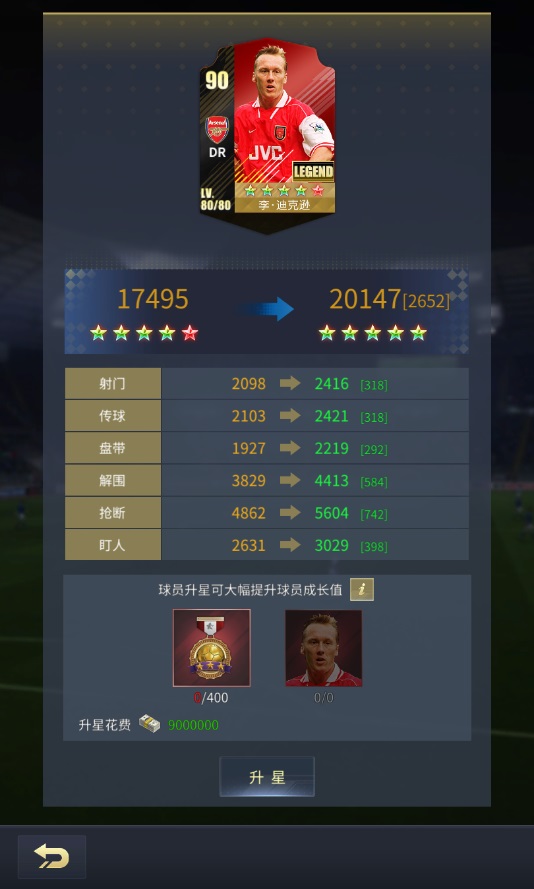 14星的排列样式是不是让强迫症患者颇为难受呢?新版本中球员的升星上限提升至15星,需消耗高级精英之证对其进行星级提升。