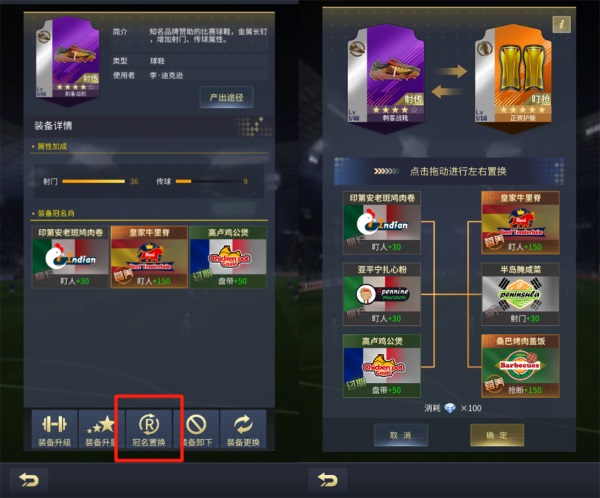 当我们看到号码时就会联想起他们在球场上的身影,现在你也可以为你手下的球员们选择专属号码了!在装备界面点击人物下方的方框就可以对号码进行设定,专属号码除了需要你心仪的号码道具,还需要专属证明来进行合成,并且可以选择适合自己的属性。这些合成材料都需要你从接下来介绍的巅峰对决玩法中获取哦~