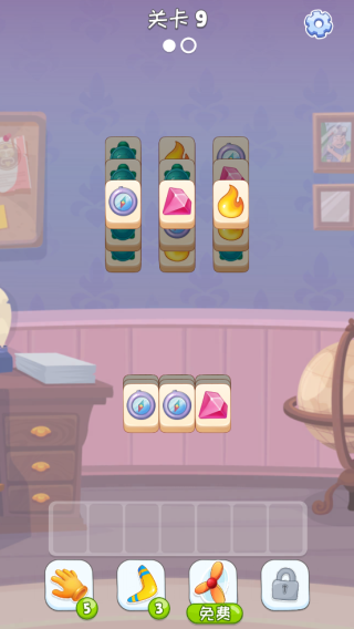 2、我们需要在槽位中收集三个同样的物品,才能进行消除,游戏玩法与“羊了个羊”类似